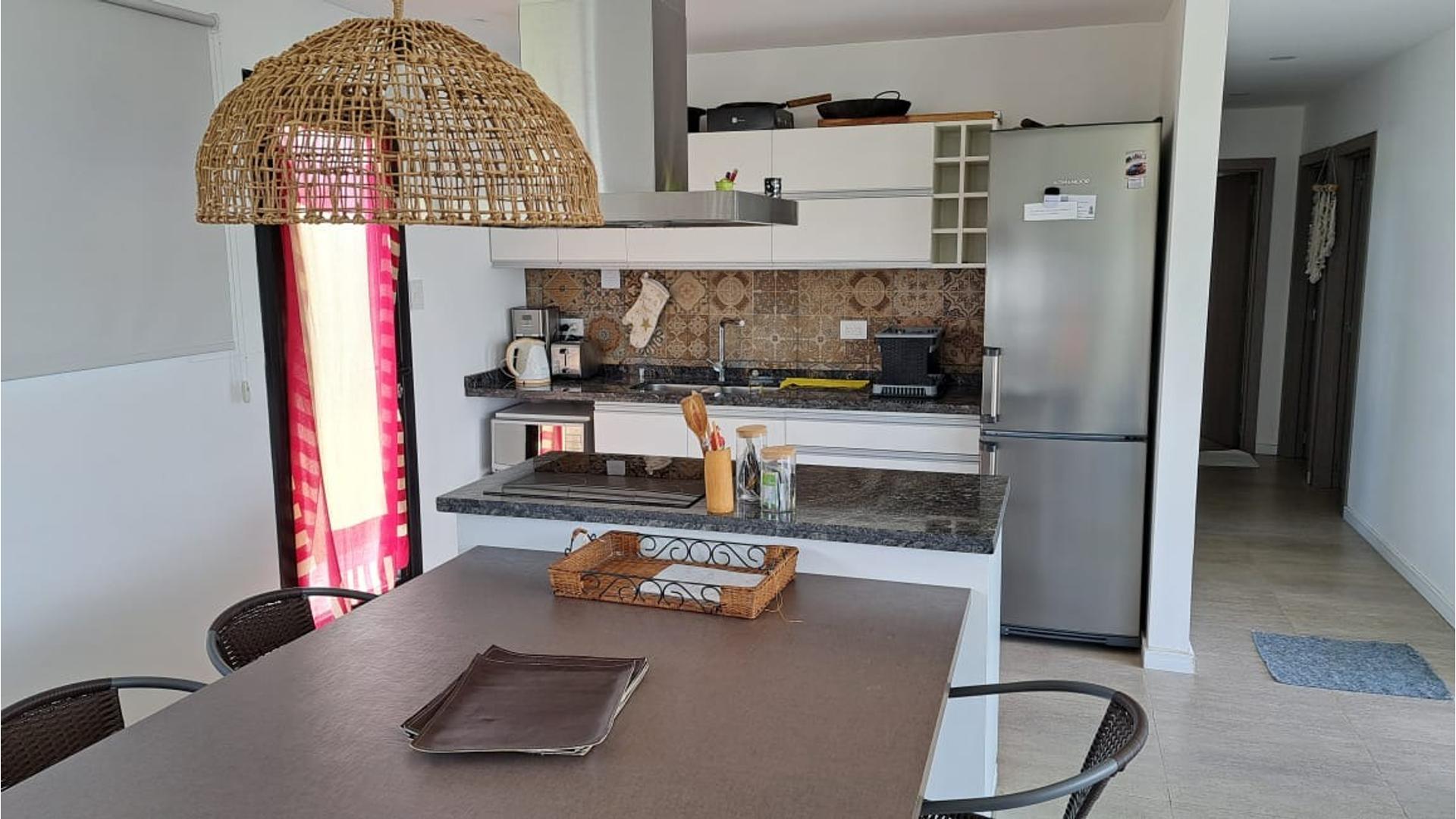 – Amplio y luminoso sector social donde se congregan la cocina, el comedor y el living (cocina totalmente amoblada y equipada) con grandes ventanales hacia la galería